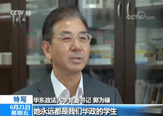 华东政法大学党委书记 郭为禄:对我们来说,不论她今后在哪里工作、生活,她永远都是我们华政的学生,都是我们华政的校友。