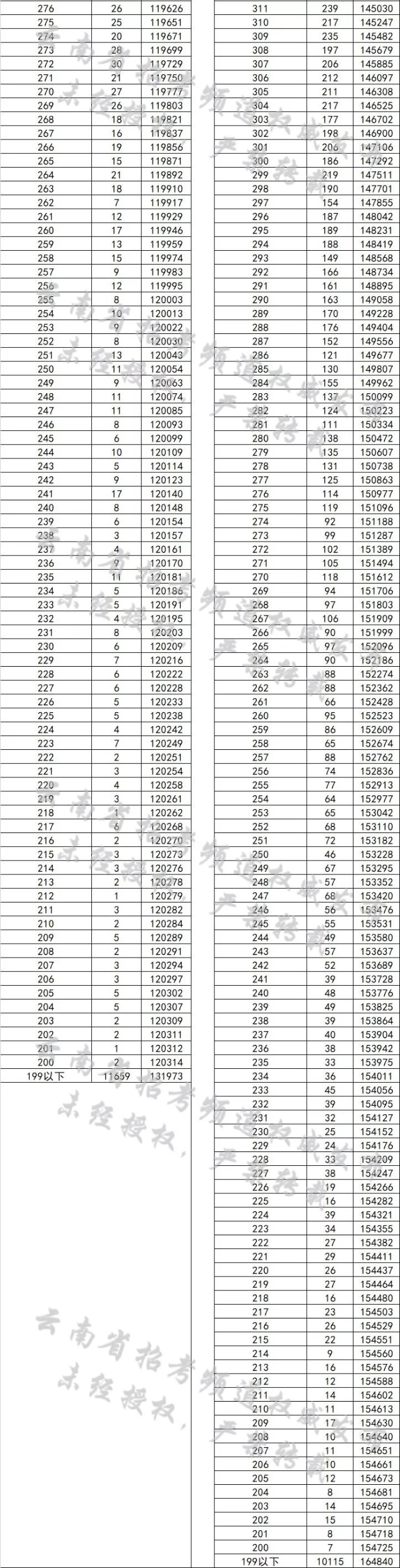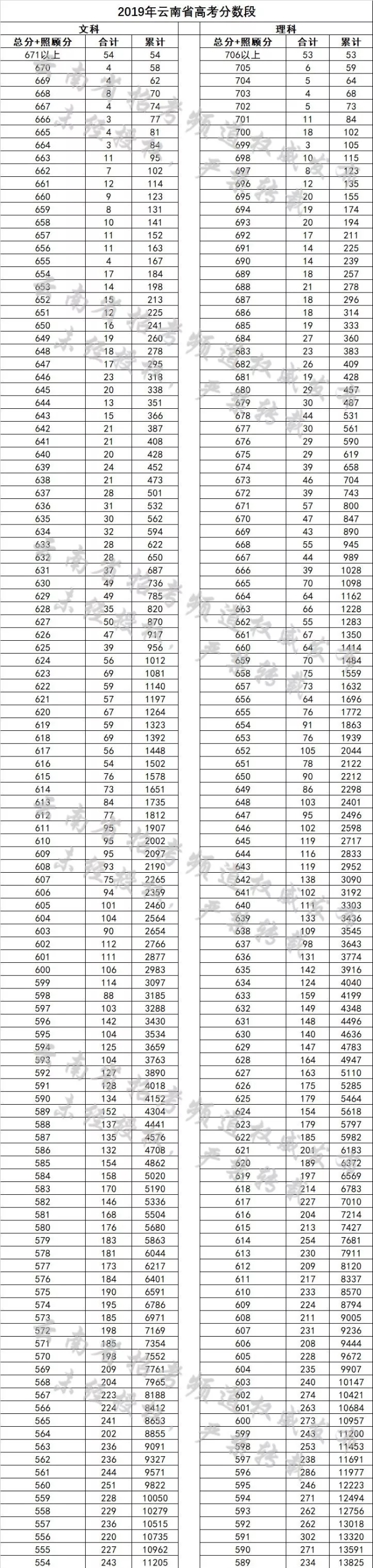 今天(6月24日),云南省招生考试院发布了2019年云南省高考分数段,其中,理科706分以上共53人,理科600分及以上共10957人,文科671分以上共54人,文科600分及以上共2983人。