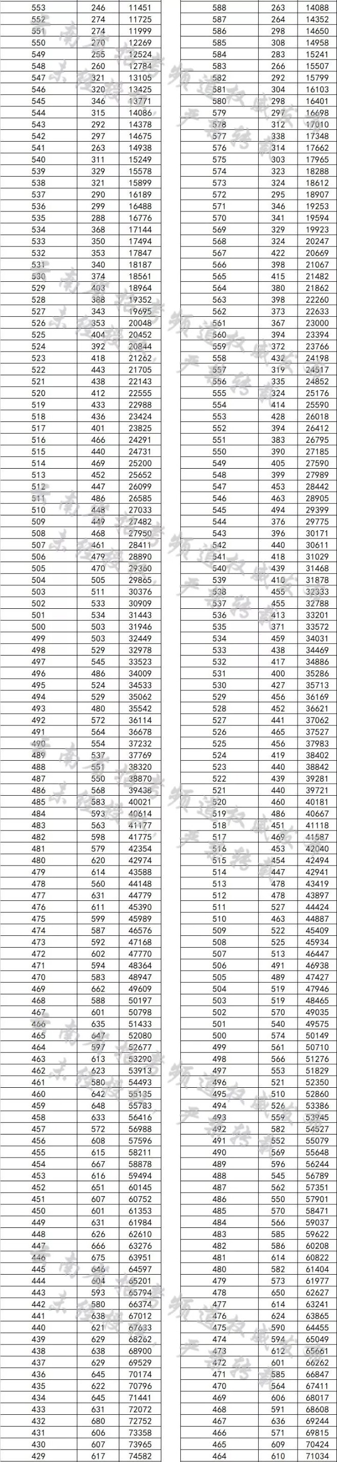 高考成绩分数段(一分一段表)是很重要的填报志愿的依据,也是各大高校划自己分数线的一部分依据。一分一段表是全省考生从高到低的排名,考生根据成绩对照一分一段表,就可以知道自己在全省的排名,再参照各类学校各批次招生计划数,确定自己该如何填报志愿。