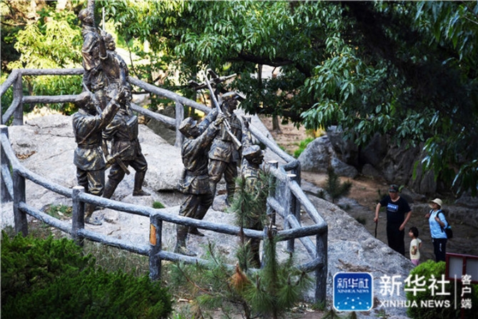 ↑6月9日,游客在孟良崮战役战场遗址参观。新华社 记者王凯/摄