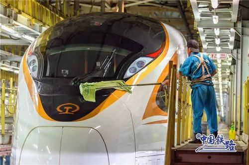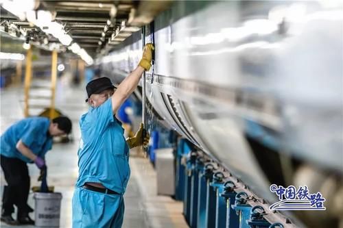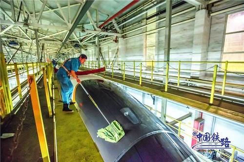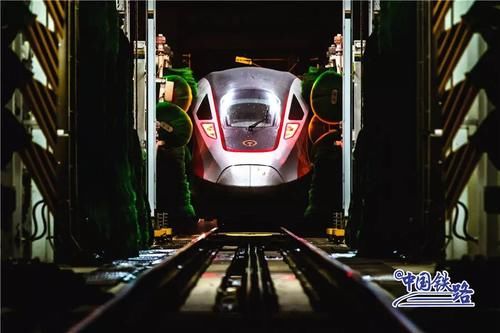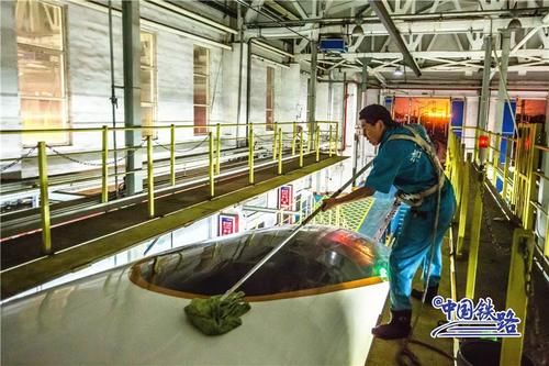 动车组在高速运行过程中会有灰尘污垢附着在车身上需要及时清洗洗车组的工作人员采取倒班制时刻守候列车“回家”365天全年无休24小时不间断擦车