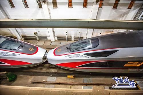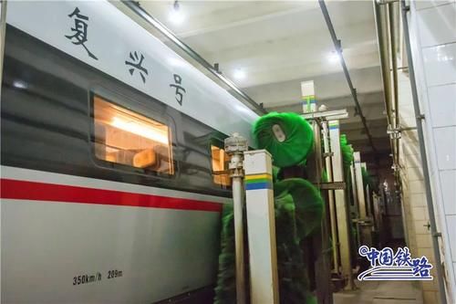 白天,复兴号在铁道线上飞驰,运送南来北往的旅客;夜晚,TA们回到动车检修库,在那里会有许多“蓝衣人”负责复兴号下班后的“夜生活”,比如“洗澡洗澡洗澡”。