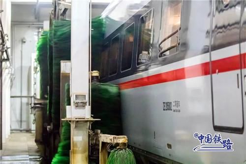 洗车时需要两人联控,并确认受电弓处于降弓状态。复兴号头部驶入洗车库通过感应装置触发喷淋系统和毛刷系统洗车库全长108米宽15米一列8辆编组复兴号的“洗澡”时间大约需要10分钟