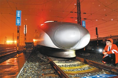 6月12日,福建省福州市已进入汛期,为了确保行车安全,福州动车段随车机械师对动车组进行开行前检查。新华社 记者张国俊/摄
