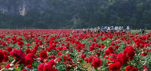 在普者黑景区的附近,有一片超过6000亩的玫瑰花,盛开时美不胜收,走在花田间阵阵花香扑鼻而来,浪漫美妙!浙江卫视的综艺节目《高能少年团》也曾来到这里取景拍摄。