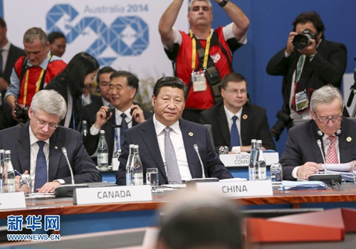 2014年11月15日,二十国集团领导人第九次峰会在澳大利亚布里斯班举行。国家主席习近平出席会议并发表题为《推动创新发展 实现联动增长》的重要讲话。新华社发