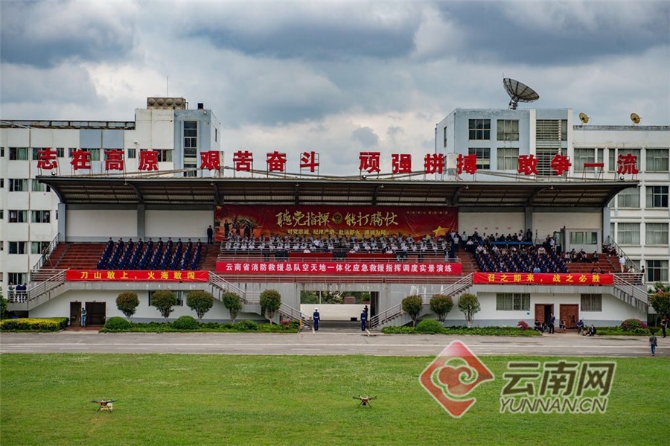6月26日下午,我国消防系统首次空天地一体化应急救援指挥调度实景演练在昆明举行。来自全国31个消防救援总队的80多名指挥中心主任和业务骨干,以及云南总队新招消防员集训队的队员们在观礼区观摩演练。本次实景演练,旨在展示云南消防救援队伍转隶转制后,主动应对地震等重特大灾害应急响应、空天一体、救援指挥体系创新的最新成果。