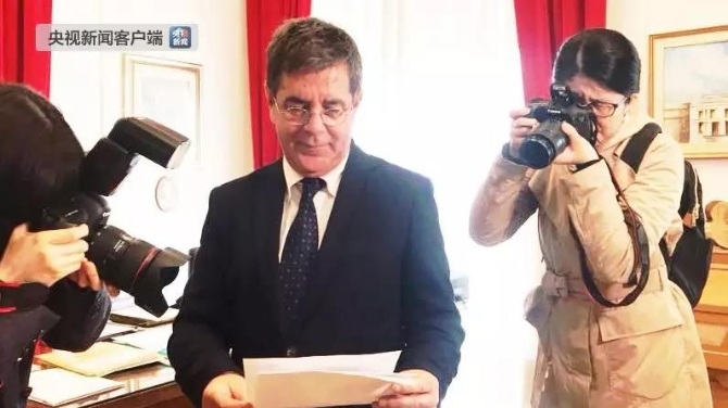 △2019年3月20日,罗马国立住读学校的学生在罗马科隆纳宫举办的读书会上,收到了习主席签名的回信。当天他们还获赠了《习近平谈治国理政》第二卷中文版图书,也有习主席亲笔签名。(央视记者孔琳琳拍摄)
