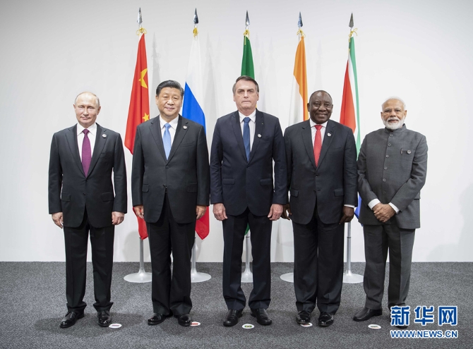 6月28日,金砖国家领导人会晤在大阪举行。国家主席习近平、巴西总统博索纳罗、俄罗斯总统普京、印度总理莫迪、南非总统拉马福萨出席。新华社记者 李涛 摄