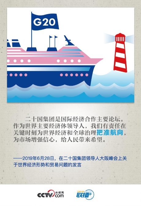6月28日,二十国集团领导人第十四次峰会在日本大阪举行,国家主席习近平出席并发表题为《携手共进,合力打造高质量世界经济》的重要讲话。