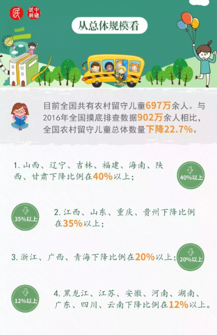 根据去年民政部的数据,目前全国共有农村留守儿童有697万余人。由于疏于监护,安全教育缺位等问题严重,农村留守儿童的安全事故发生率居高不下。