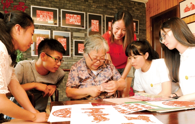 浙江“千万工程”启动以来,在整治农村人居环境的同时,也大力加强农村公共文化建设,提高乡村精神文化水平,全面提升农民的获得感、幸福感。图为宁波市非物质文化遗产传承人在传授剪纸艺术。 浙江省农办供图