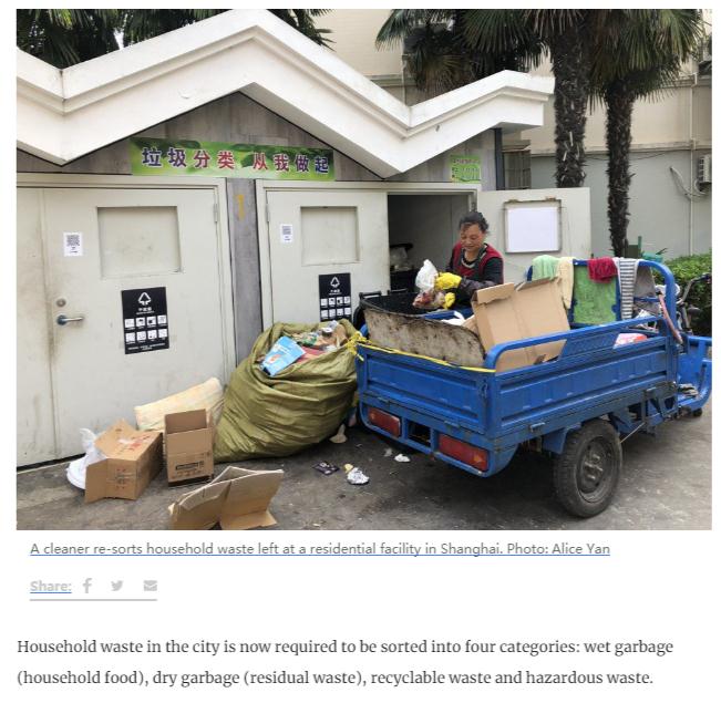 《南华早报》还认为,上海此次执行"最严垃圾分类",为一些行业和从业者带来了商机。