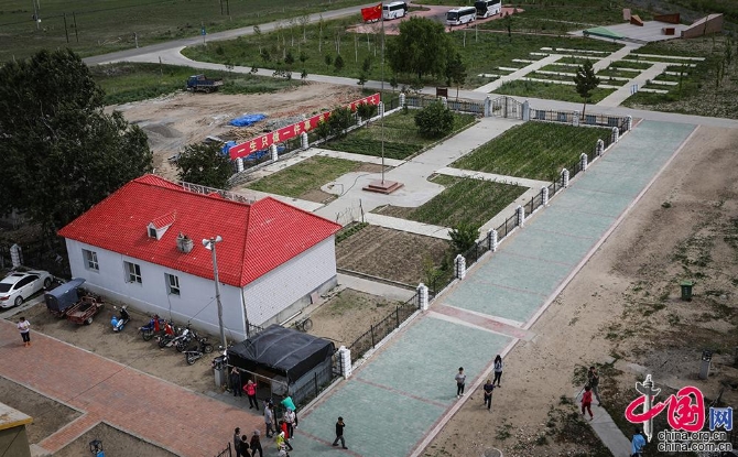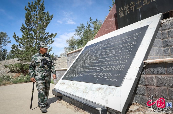 2015年,军武哨所前的院子建成了“中华”字样。随着一八五团对红色旅游资源不断开发,西北边境第一连、军武哨所、抗洪守土纪念馆等景点的知名度也越来越高。哨所也成为了游客来这里的“必游之处”。中国网记者伦晓璇 摄