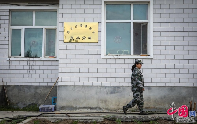 新疆生产建设兵团第十师一八五团位于阿尔泰山西南边缘的国境线上,被称为“西北边境第一团”,一条阿拉克别克河横亘在中国与哈萨克斯坦两国之间。被誉为“西北民兵第一夫妻哨”的军武哨所就坐落在这里。哨所的男主人叫马军武,是一八五团水管所职工,女主人叫张正美。1988年以来,马军武夫妻二人克服艰苦的生存环境,忍受寂寞,以哨所为家,风雨无阻地在边境线巡边、守水、护林。中国网记者伦晓璇 摄