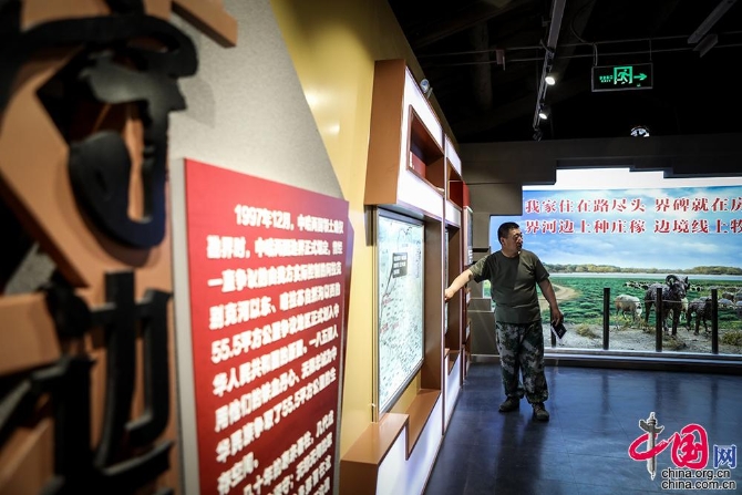 巡边之后,马军武经常在哨所旁的抗洪守土纪念馆向游客义务讲述抗洪守土故事、宣传边境管理法规、弘扬兵团精神。中国网记者 伦晓璇摄