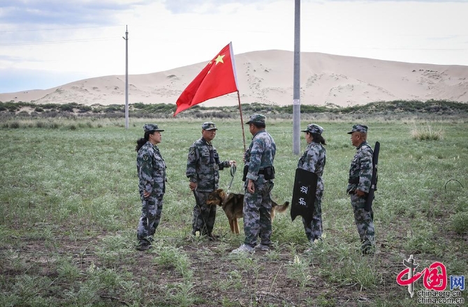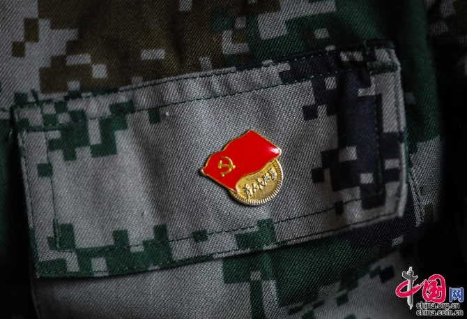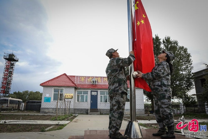 每天清晨,马军武夫妻俩会将一面鲜艳的五星红旗升起在祖国的边防线。2010年7月1日,马军武加入中国共产党。2013年7月1日,张正美也成为党员。宣誓入党当天,站在党旗前,马军武亲手为张正美戴上党徽,“好光荣!”张正美激动地说。中国网记者伦晓璇 摄