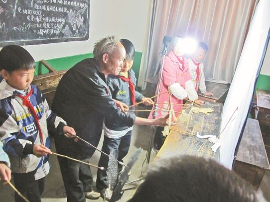 在铜厂乡少年宫,孩子们正在聚精会神地表演皮影戏。铜厂乡皮影戏历史悠久,过去只在家族成员中传承,而如今皮影戏传承人王文跃老人走进乡村学校少年宫,教山村孩子们学习制作皮影,表演皮影戏。
