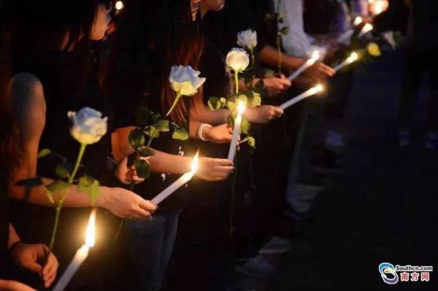 当时每个人都手捧着白蜡烛站在队列中间等待追思会的开始,大家的心情都特别沉重,一个刚考上大学的美好生命,就这么消失了……