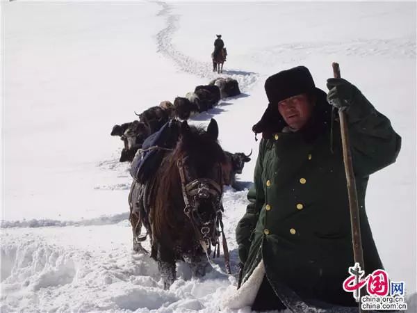 每次转场前,努尔江都走在最前面踏雪开路。 新疆生产建设兵团第四师七十八团刘建 供图?