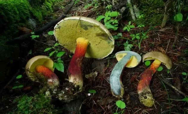 如松乳菇、红汁乳菇掰开或划伤后会流出乳汁,但却是美味的食用菌。一些可食用的牛肝菌断面会变成蓝色,也是可食的。