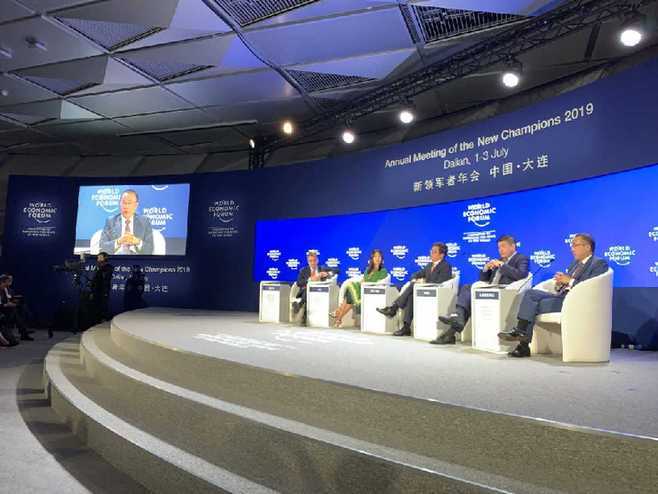 在7月3日上午举办的2019夏季达沃斯“全球经济展望:亚洲视角”分论坛上,蒙牛集团总裁卢敏放分享了发展国际化业务经验与体会,和与会嘉宾探讨了乳品企业在全世界讲好“中国故事”的思路。