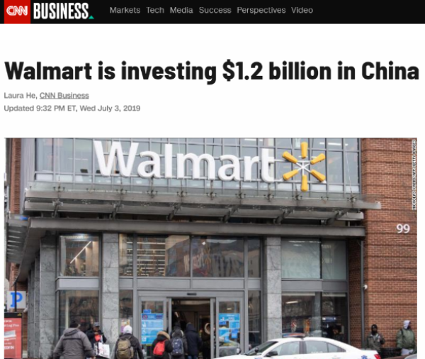 “我认为中国将是一个巨大的商业机会,”沃尔玛首席执行官董明伦(Doug McMillon)在6月的一次投资者会议上说。