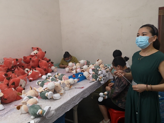 过去,由于丈夫常年在外务工,两个孩子的照料需求让唐国群无法抽身,只能在家赋闲。镇上开办毛绒玩具社区工厂后,将像她这样的闲置劳动力也吸纳进来。不用坐班,计件结算,让唐国群十分满意。现在亲戚,邻居也到她家一起做工,唐国群家俨然已经成为一个家庭工坊。