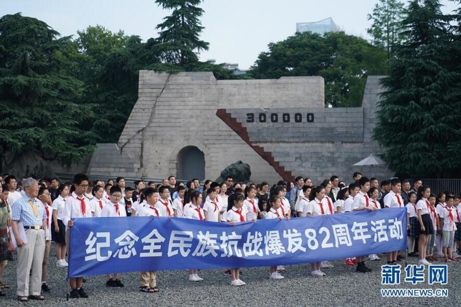 7月7日,抗战老战士代表、小学生们等参加活动。当日,位于南京的侵华日军南京大屠杀遇难同胞纪念馆举行活动纪念全民族抗战爆发82周年。新华社记者 季春鹏 摄