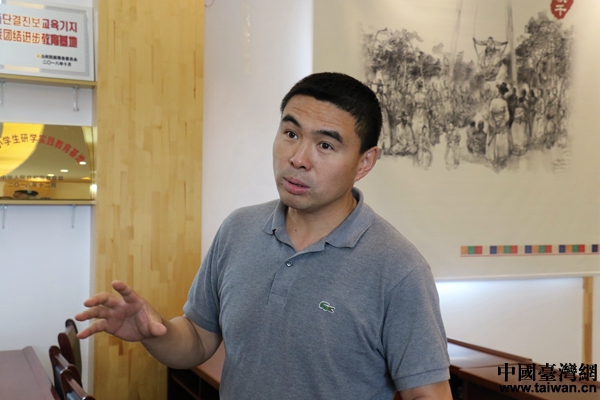 水南村第一书记姜云东向采访团介绍村中产业发展概况。(中国台湾网 尹赛楠 摄)