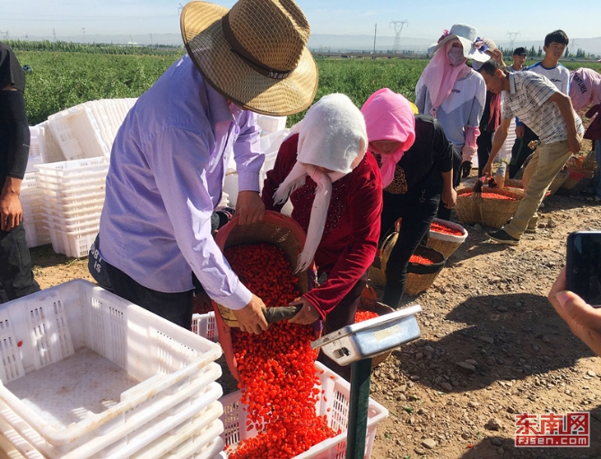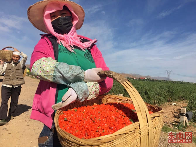 在枸杞采摘期,每天都有上千名农民参与采摘,增加收入。 东南网记者 颜财斌 摄
