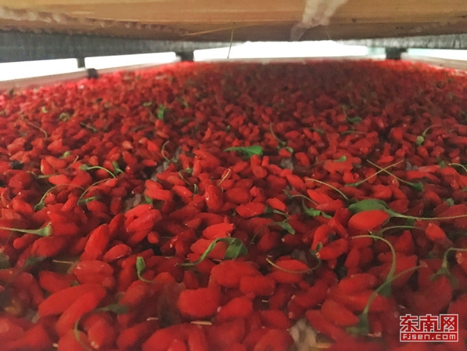 刚刚经过烘干处理的枸杞 东南网记者 颜财斌 摄
