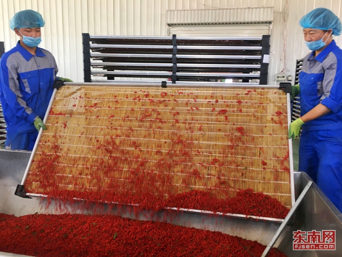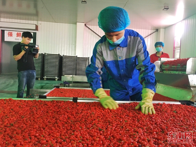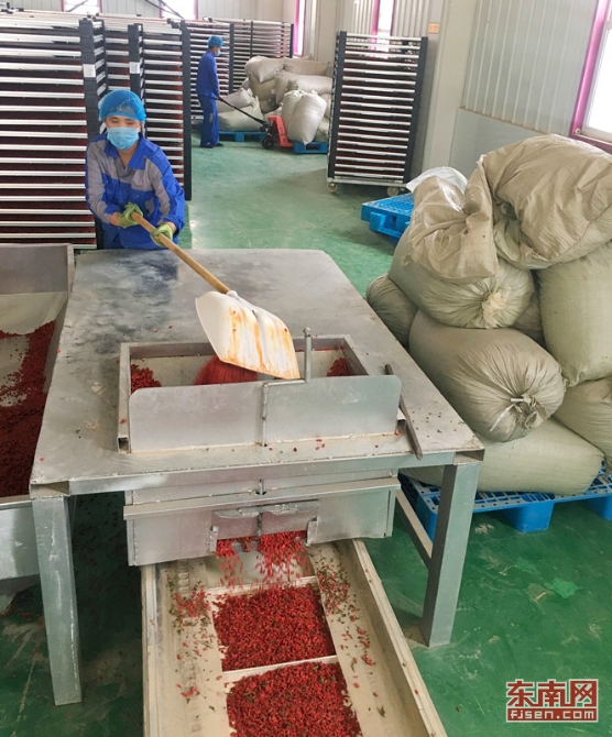 工人准备将烘干后的枸杞进行深加工。东南网记者 颜财斌 摄