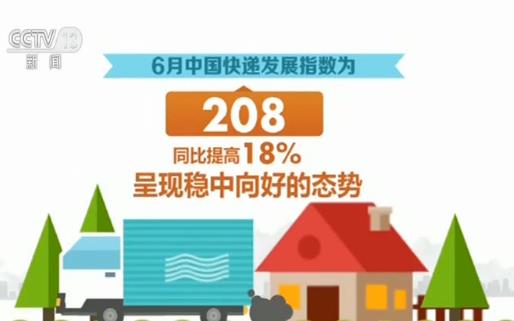 数据显示,6月中国快递发展指数为208,同比提高18%,呈现稳中向好的态势。快递业务量完成53亿件,同比增长25.3%,快递业务收入完成630亿元,同比增长23.9%。
