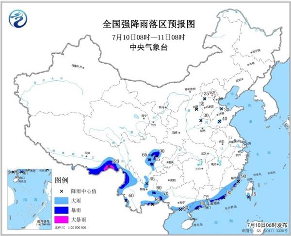 中央气象台7月10日06时发布暴雨蓝色预警: