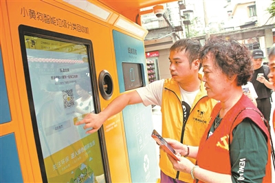 三元里街梓元岗社区引进智能垃圾分类回收设备“小黄狗”。