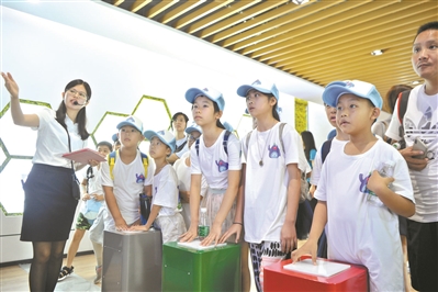 6月1日,小朋友们在家长的陪同下参观第六资源热力电厂。