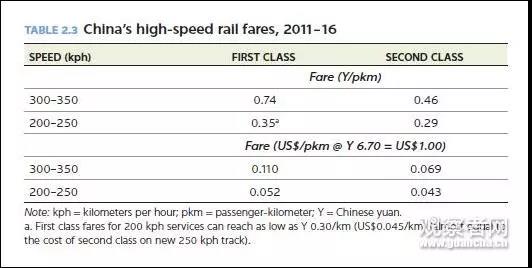 世行在2013年末对27条运行中高铁建设成本的分析显示,设计时速350公里的线路单位成本为每公里9400万至1.83亿元,设计时速250 公里的客运专线(个别除外)的单位成本为每公里7000万至1.69亿元。