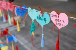 今早,天空飘着绵绵细雨,参加毕业典礼的同学们如约而至。上午8点半,4个毕业班的同学牵着父母走上“红毯”,夹道欢迎他们的是校长和各位老师们,还有事前精心布置的一簇簇盛开着烂漫桃花的桃树。每一对学生家长走过红毯时,列队欢迎队伍都向他们报以热烈的掌声与欢呼声。