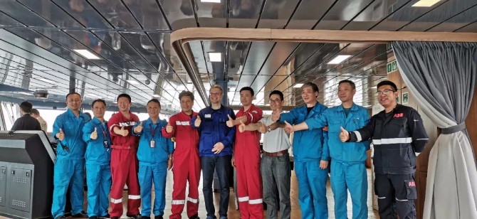 东海试航后,“雪龙2”号各建造方庆祝试航圆满成功。