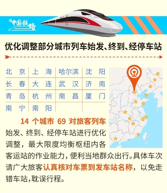与此同时,为满足旅客需求、提高运输效率,全国铁路还对北京、上海、哈尔滨、沈阳、长春、大连、武汉、济南、青岛、杭州、南昌、厦门、南宁、南阳14个城市69对旅客列车始发、终到、经停车站进行优化调整,最大限度均衡枢纽内各客运站的作业能力,便利当地群众出行。目前成都到西宁,全程最快运行时间只要9小时55分。