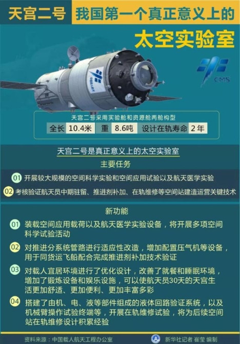 天宫二号空间实验室已完成全部拓展试验