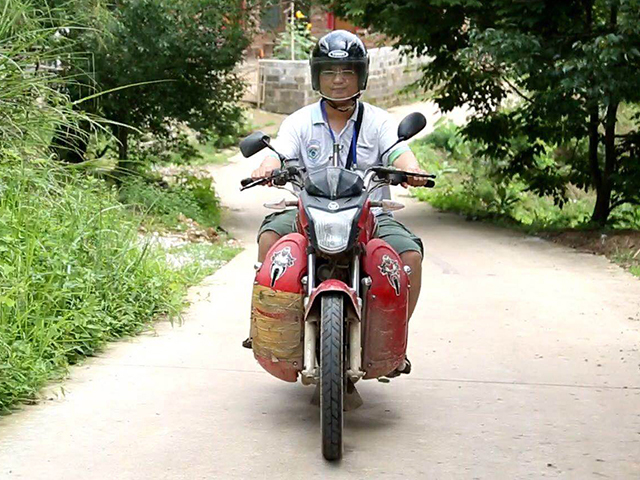 骑着摩托车往返桂林和驻地、进村入户走访民情、到县里乡里为民办实事,被村民称为“摩托车书记”