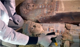 在当天举行的发布会上,埃及文物部还宣布埃及考古队发掘出一堵长约60米的埃及中王国时期的城墙遗迹,以及一批石制、泥制和木制棺椁,其中一些棺椁中的木乃伊仍保存完好。