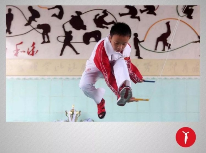 从2013年开始,我们学校先后培养出20多名世界跳绳冠军,打破了10多项跳绳世界纪录。现如今,放眼整个世界各大跳绳比赛的赛场,用的都是我们独创的钢丝绳和半蹲式跳法。