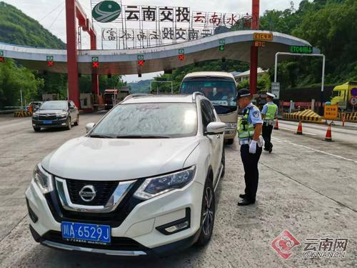 7月14日下午,来自四川高速交警三支队、宜宾市公安局交警支队与昭通市公安局交警支队水昭高速交巡警大队、水富市公安局交警大队的民警在云南北大门G85银昆高速水富站开展联合执勤执法。在未来三个月,滇川两省公安交管部门将全力做好西南片区区域整治行动。