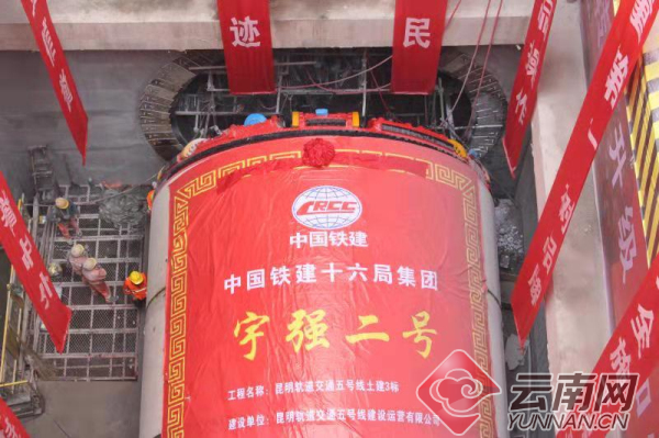 7月15日,记者从昆明轨道交通集团有限公司获悉,伴随着盾构机隆隆的轰鸣声,昆明地铁5号线土建3标“宇强二号”盾构机近日在穿金路站顺利始发,正式开始掘进作业,开启了昆明地铁5号线穿金路站至昆明火车北站区间(简称穿昆区间)的“地下之旅”,也意味着昆明地铁5号线穿昆区间盾构实现双线掘进施工。