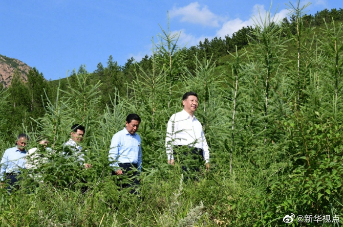 15日下午,习近平总书记来到内蒙古赤峰市喀喇沁旗马鞍山林场考察。沿着崎岖的护林小道,习近平步行进入林区察看林木长势,同正在作业的护林员们亲切交谈,了解林场建设发展情况。大家告诉总书记,现在生态好了,在上山巡护的时候,时常碰到狍子、野兔、山鸡、野猪等野生动物,来旅游的人也多了,山野菜不愁卖了,山货也特别多,老百姓切切实实得到了好处,更加深刻地认识到绿水青山就是金山银山。习近平对大家说:“护林员很重要,种树多不容易啊!建设祖国北方和首都生态安全屏障是战略性的任务,是我们要世世代代做下去的事情。”