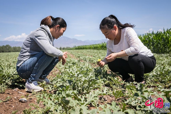 2012年4月,王平向连队党支部建议设立“王平帮扶基金”,由王平拿出5万元作为启动资金,用于职工工作生活应急之用。连队党员干部、种植养殖户被王平的做法打动,拿出资金共同建立帮扶基金。王平不仅给职工提供资金,还经常提供技术方面的指导。在一片种满打瓜的田地里,王平与连队职工王雪花查看打瓜长势,分析施肥的时机。多年来,王平不放弃任何学习的机会,还订了很多书刊和杂志,报学习班,学习各种养殖业、农牧业知识。中国网记者伦晓璇 摄