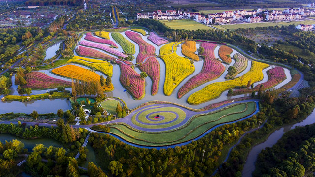 春有百花秋有月,夏有凉风冬有雪。2月看梅花,3月看樱花,5月看虞美人,9月看向日葵、格桑花,11月初赏枫叶……坐落在上海市金山区朱泾镇待泾村的“花开海上”生态园,真正实现了月月皆开花,四季都有景。